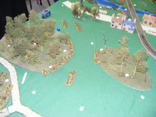 pour finir , on a passé une super après midi . en plus de la partie , nous avons pu tester les règles de JF , au niveau des combats nocturnes et des règles des sapeurs ( démolition de pont , destruction d'ouvrage ennemi lors d'un assaut , etc ... )