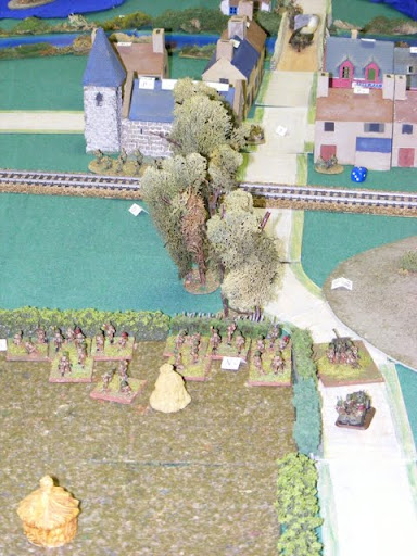 les autres sapeurs aux abords du village ,quant à eux , s'infiltrent près de l'église et donnent l'assaut ; malgrès une résistance acharnée et à cause de la pénombre , les sapeurs repoussent les allemands de l'église et engagent les troupes ennemis dans la ville .